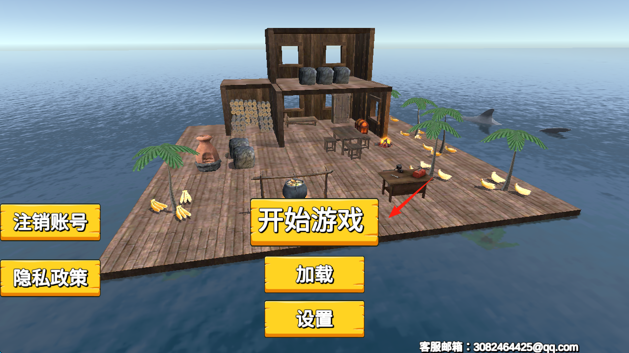 1、点击【开始游戏】(红箭头),进入海岛场景,操控角色,用左侧摇杆移动,熟悉界面(背包工具),开启生存。