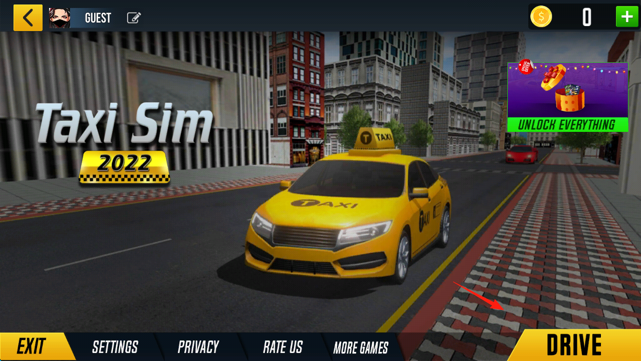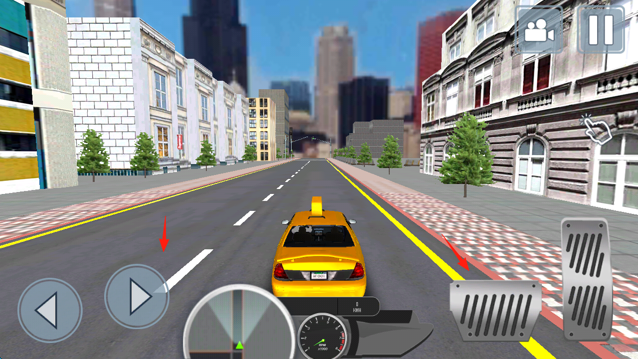 1、点击【DRIVE】(红箭头),进入城市街道,操控出租车,用方向键(左右)、油门刹车,熟悉驾驶操作。