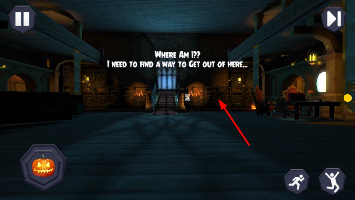 1、进入鬼屋场景后探索各房间,点击物品互动收集道具,从细节中寻找逃离的关键线索。