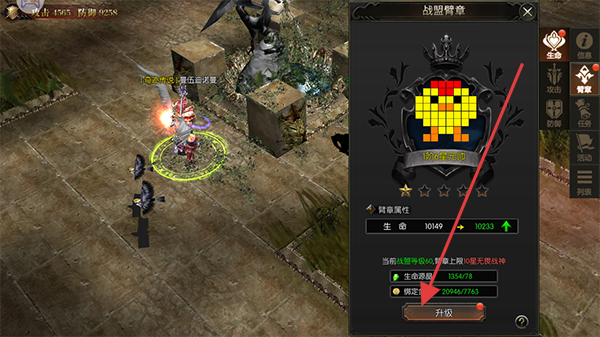 3、培养“战盟神兽”,点击“升级”,消耗资源提升属性,关注“神兽嘱托”任务,完成获取养成材料。