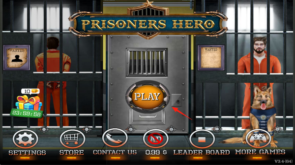 1、点击【PLAY】(红箭头),进入监狱场景,观察界面,熟悉功能(设置商店),开始逃脱挑战。