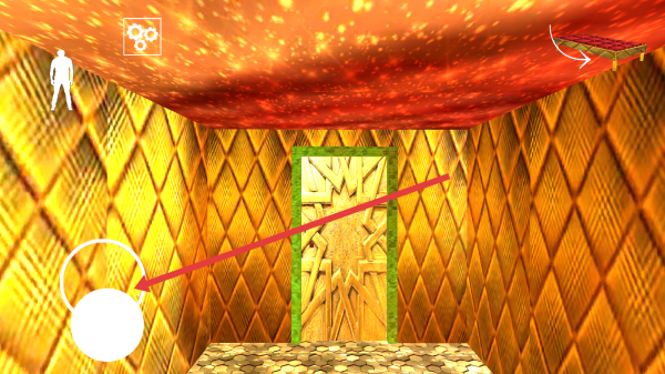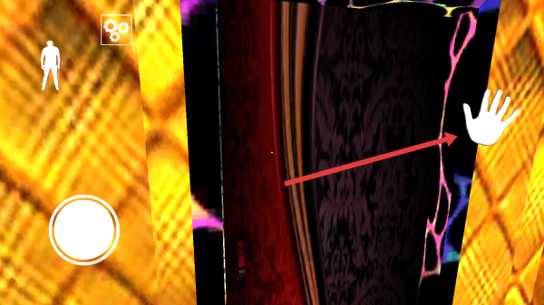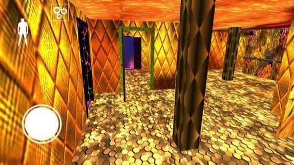 2、在金色房间,滑动左侧摇杆移动角色,朝箭头指向的门探索,留意环境,躲避奶奶追捕。