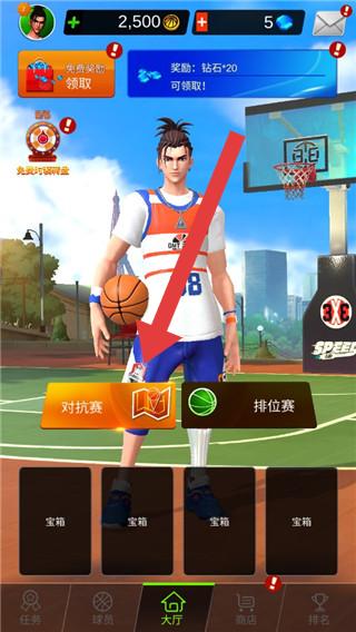 1、在大厅点击“对抗赛”,进入匹配,选择球员,配置技能,准备街头篮球对战,积累比赛经验。