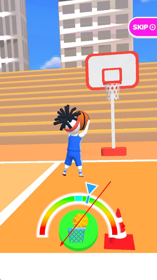 2、挑战关卡模式时,根据场景障碍和篮筐位置,精准计算跳跃时机与力度,完成指定得分目标。
