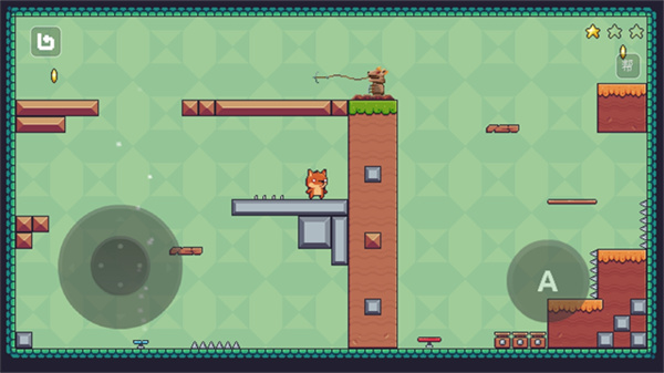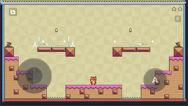 3、操控方式采用分区式设计:左侧屏幕负责小狐狸的行进方位,右侧区域则承担起跃动作的触发任务,两指协调,游刃有余。