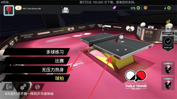 1、第一人称操作与技巧深度:单指滑动屏幕控制拍面角度与击球力度,上划拉弧圈、下划搓球、侧滑削球,长按可蓄力扣杀,隐藏「专业模式。