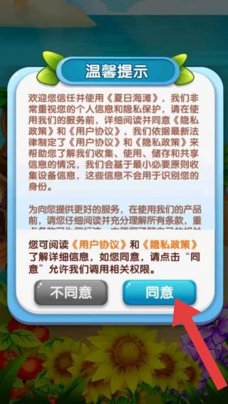 2、呈现“温馨提示”,要求玩家阅读并确认,通过点击“同意”或“不同意”决定是否使用服务,是首次使用时常见的权限与规则确认环节。