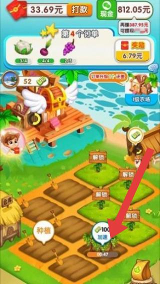 3、呈现农场种植、订单、收益等元素,玩家可进行播种、加速作物生长、完成订单等操作,属于融合经营与收益模拟,常见于小程序游戏场景。