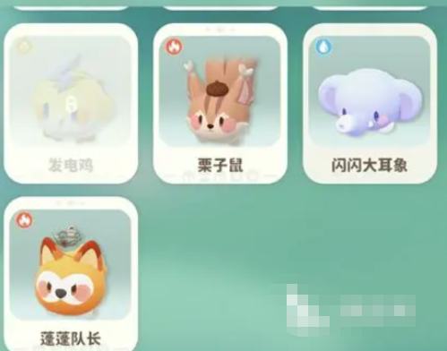 1、分类逻辑:划分普通(蓝蓝鼠、桃桃猴)与稀有(闪闪大耳象、蓬蓬队长),附加元素标识(水、火等),构建“稀有度+属性”双维度收集框架。