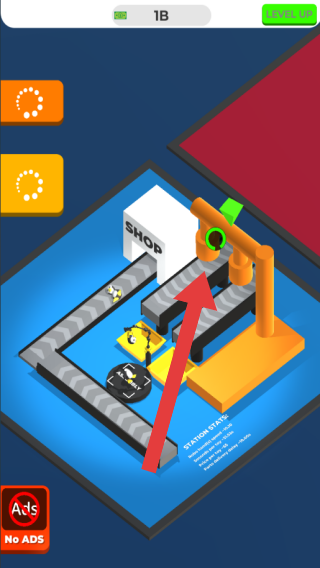 2、实体信息有“PenguinStation”、“StationInfo”,显示“RoboHands”数量为2、“ToyShop”还有“LEVELUP(升级)”等界面元素,呈现工厂生产设施及升级管理的玩法。