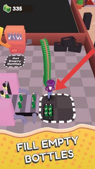 3、文字“FILLEMPTYBOTTLES(填充空瓶子)”是玩法任务,玩家操控角色在对应区域完成空瓶填充等操作,经营夜店相关流程,属于模拟经营类的体验。