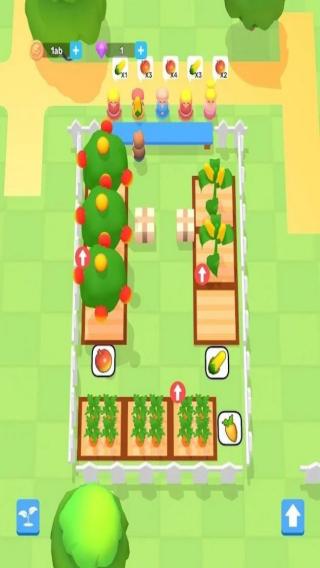 3、呈现出卡通风格的农场经营场景,有各类作物种植区、角色及道具栏等元素,玩家可进行种植、培育、收获等农场经营操作,属于模拟经营类玩法。