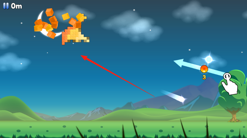1、点击“START”,进入关卡,观察黄色怪物位置,滑动右侧小球,调整弹道(蓝色箭头)。