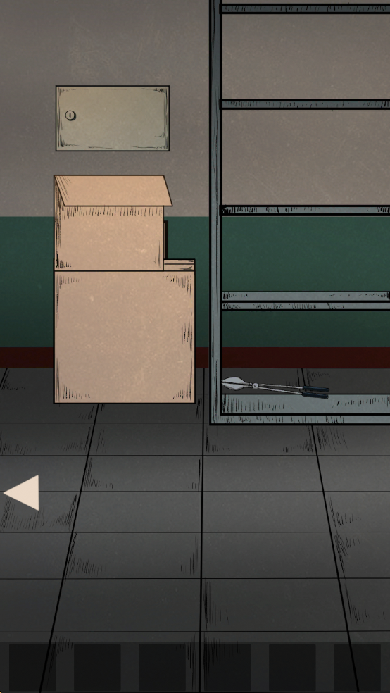 镜面提示:用纸杯接一杯热水回到初始房间,用木塞堵住水池再倒上热水,观察镜面出现的提示「LIE」,到房间右边货架处移开纸箱,使用螺丝刀卸下木板拿到里面的「电源线」。