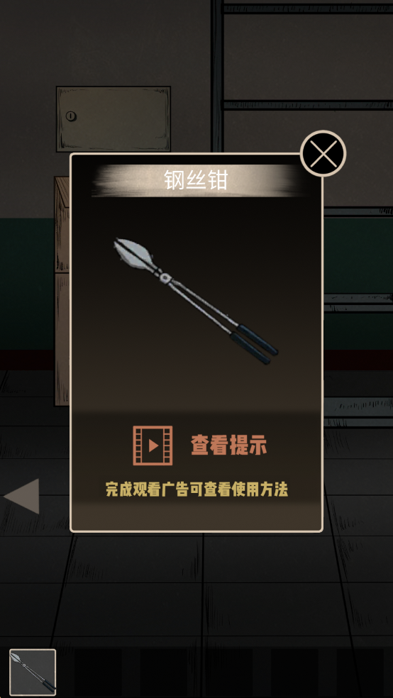 物资筹备:到铁门右边拿走货架上的「钢丝钳」,剪断柜门上的钢丝,根据铁门左边布告栏上的颜色提示(红黄蓝),结合柜子上的杯子数量得出密码「343」。