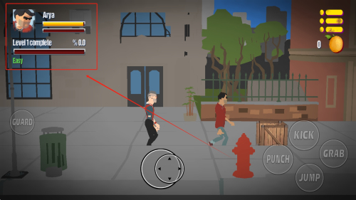 2、通过虚拟按键操控角色行动,施展拳脚组合技,在激烈对抗中击败拦路对手。