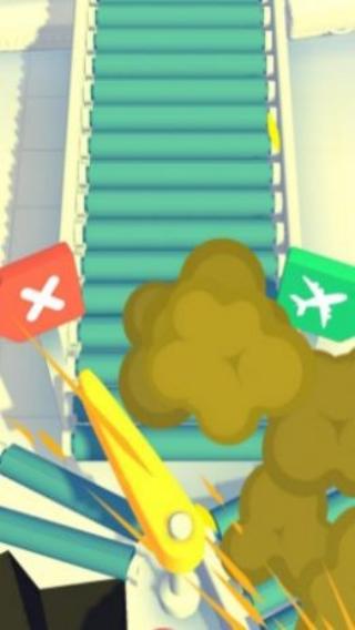 3、玩家需通过操作黄色指针,引导传送带上的物品流向对应通道,考验判断与反应,通过正确分拣完成关卡,是该类解压、益智游戏的典型场景,利用简单操作和趣味设定。