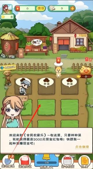 1、初入全民农家乐,挥动锄头开垦杂草丛生的荒地,播下小麦种子,开启田园经营的第一步。