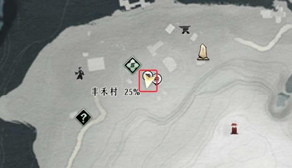 2、探索机制:地图标记探索点(丰禾村、隐月山),靠近红框目标(村落人群、野外聚会)触发新任务/对话,探索进度随交互逐步提升(如丰禾村25%)。