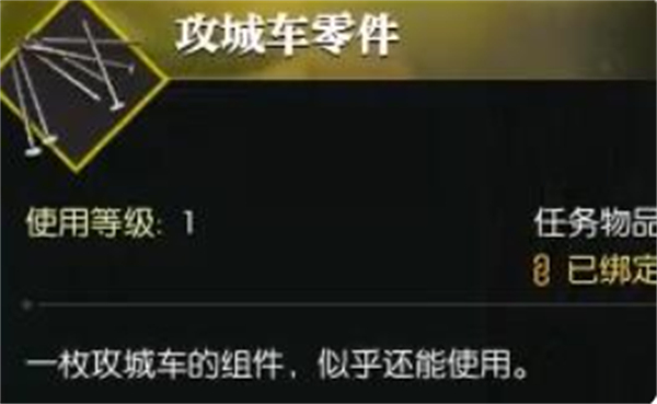 零件收集:到达坐标点后,围绕破损的攻城车残骸寻找3个散落零件(车轮残片、投石机臂、火药桶),交互时需消耗1点体力值。