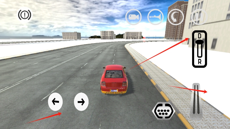 1、基础驾驶操控:通过虚拟方向盘、刹车、油门、档位等按键控制车辆,点击喇叭提醒,滑动屏幕切换视角,简单操作易上手,还可自定义操作设置。