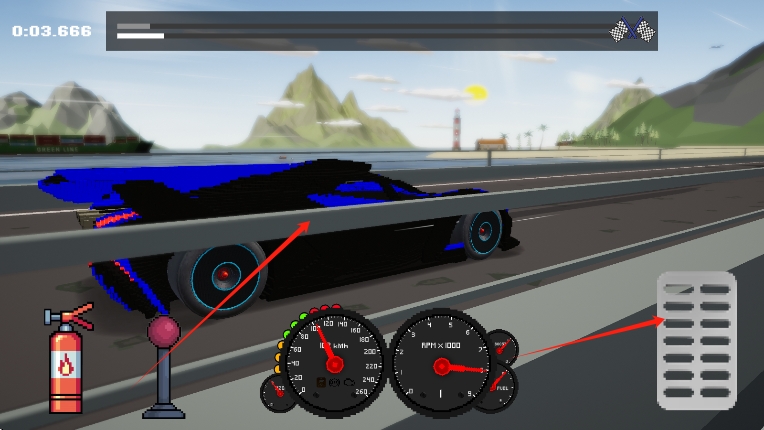 1、复古像素美学:采用低多边形像素艺术风格,车辆碰撞时呈现方块化解体效果,搭配8位元电子音效,营造怀旧街机竞速氛围。