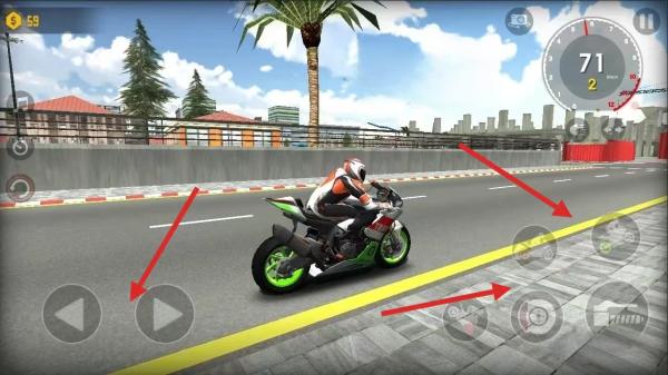 3、成功冲过终点线,赢得冠军荣耀,收获丰厚奖励,解锁更高级别的酷炫摩托车与高难度赛道。