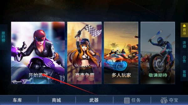 1、开启王者极速摩托之旅,从琳琅满目的车库中挑选心仪座驾,缓缓驶向起点,准备迎接首次赛道挑战。