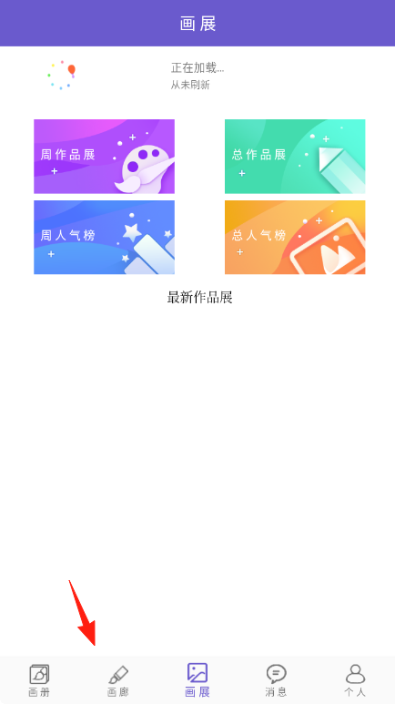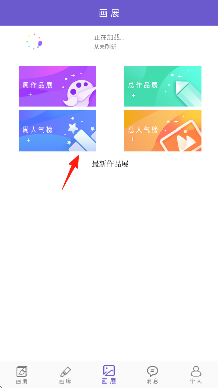1、作品浏览在“画展”页,选“周人气榜”等板块,查看用户画作,了解创作趋势,给喜欢作品点赞评论。