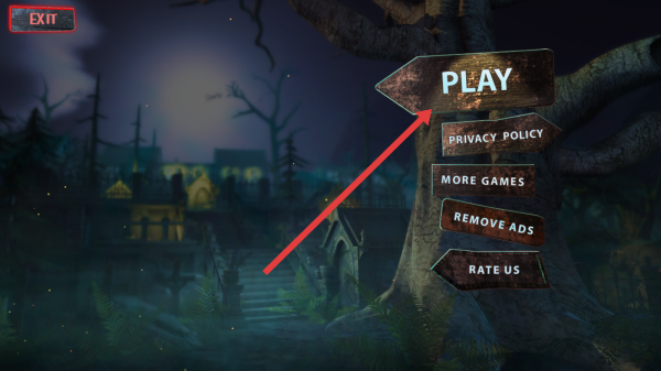 1、点击【PLAY】,进入恐怖解谜游戏,在阴森场景(墓地、古堡)开启密室逃脱冒险。