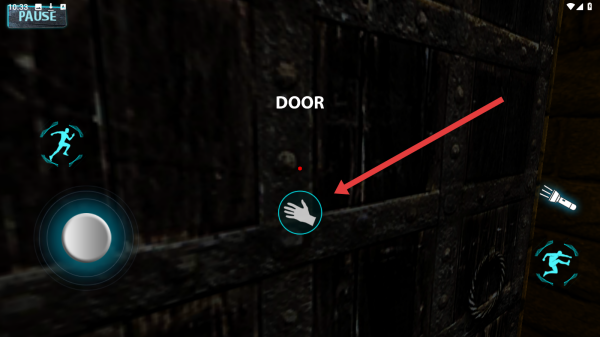 3、靠近铁门(DOOR),点击手掌图标,尝试互动/解谜,打开门,推进逃脱流程。
