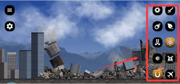2、你可以使用龙卷风、导弹、核武器等来毁坏建筑。