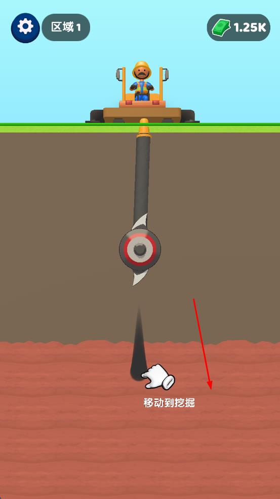 1、进入游戏后操控卡通角色使用初始工具在地表挖掘,收集基础矿石资源,售卖获取启动金币,熟悉挖掘操作与资源收集流程。