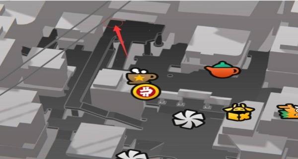 1、定位地图中咖啡杯与货币符号标识旁,沿红箭头指向的建筑区域探索,破解周边障碍,获取小卡格车。