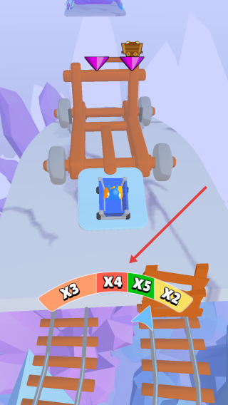 3、冲坡时,选“X5”倍数道,叠加冲刺倍数,快速到终点,赢宝箱奖励。