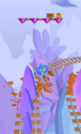 2、矿车沿轨道行驶,避障碍,优先选蓝色轨道,冲向“LEVEL1”目标(宝箱)。