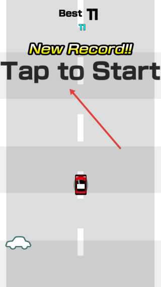 1、点“Tap to Start”,开始新局,控红色汽车,在公路躲避障碍。