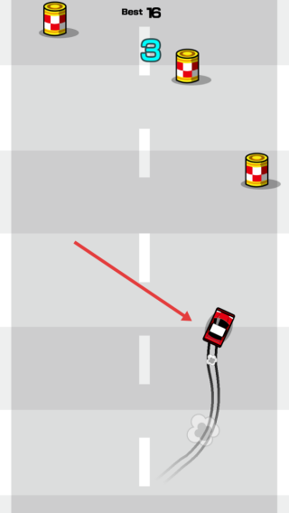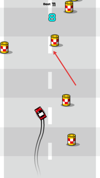 2、遇路障(红白桶),左右滑动屏幕,让汽车漂移/变道,避碰撞,保行驶。