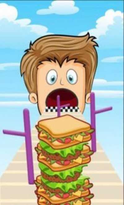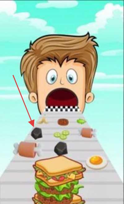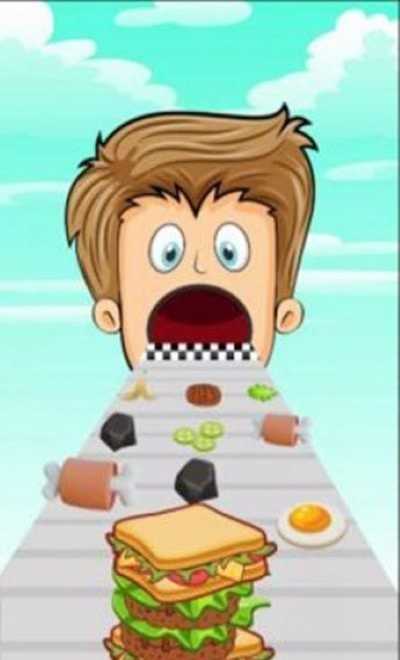 3、引导三明治抵达终点,供前方角色吞食,完成关卡。