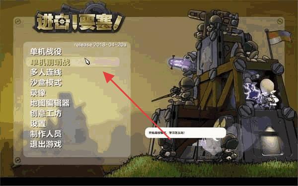 1、游戏主界面,可选择“单机战役”“多人连线”等模式,点击“单机孤前线”,开始单人战役,体验建造、攻防。