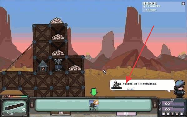 3、战斗建造界面,在荒漠地形,搭建要塞建筑(如储石堆),按提示操作(如“建造与武装”),生产单位,防御敌人,推进战役。