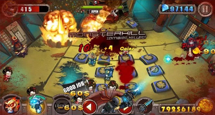 3、触屏操控方式:采用简单的触屏操控,只需点击屏幕即可控制射击角度,操作便捷易上手,让玩家专注于应对僵尸袭击。