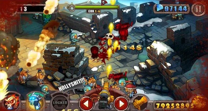 2、固定防御战斗:玩家固定在防御墙内无法移动,需通过点击屏幕控制射击角度反击僵尸,独特的战斗设定带来别样的射击挑战。