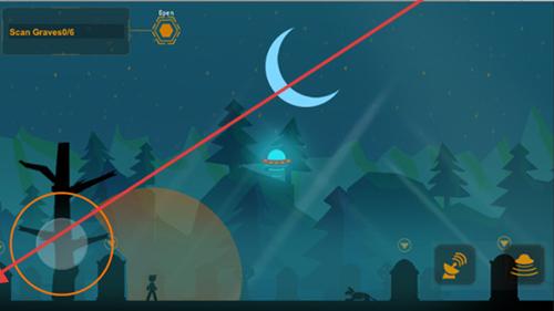 3、到墓地场景,依据【Scan Graves06】任务,借左侧虚拟摇杆移动角色,用扫描功能探索,结合环境找线索推进关卡。