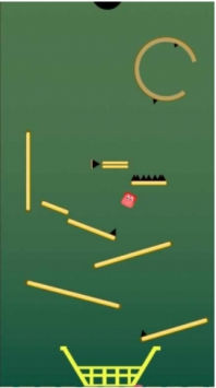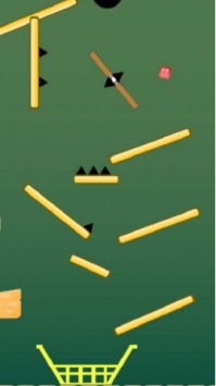2、物理操控果冻受重力地形影响,从起点滑落,通过倾斜屏幕点击,引导其避开尖刺,沿木板滚动。