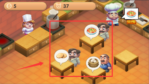 1、订单限时挑战,顾客需求会以气泡形式呈现,需在倒计时内完成对应菜品,逾期将影响小费收益。