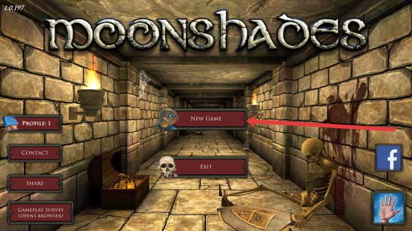 1、进入游戏后,点击【NEW0GAME】,进入【Moonshades】,开启地牢冒险之旅。