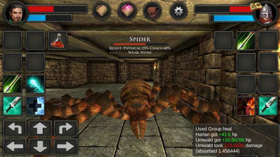 3、地牢探索时,用方向键(如右箭头)控制角色移动,探索房间,触发战斗、解谜等任务。