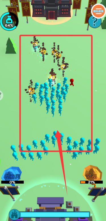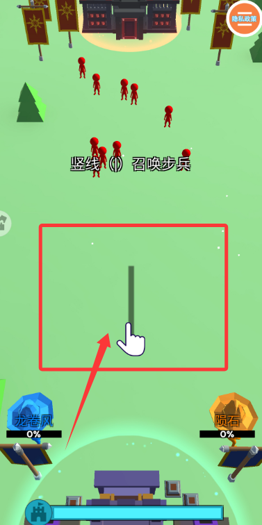 2、在屏幕上划动手指召唤步兵种,合理搭配近战与远程单位组建强力作战小队。