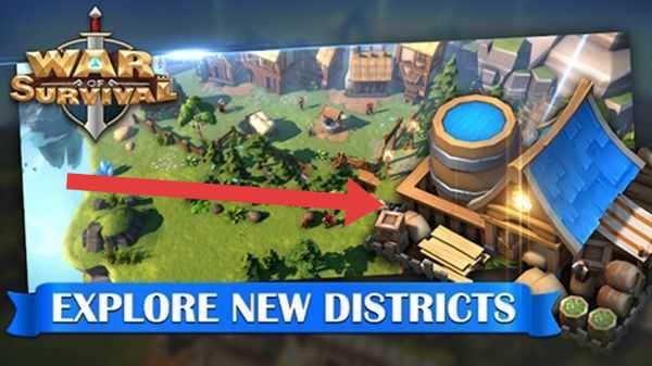 1、点击主界面箭头指向的城堡,进入【War-of-Survival】核心领地,管理建筑、训练军队。
